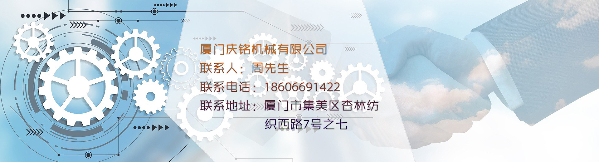 制作大圓機心臟和傳動零配件。供應臺灣和大陸機械廠,至今三十多年歷史。經過不斷的辛勤努力,2000年在大陸福建省成立了廈門慶祥銘機械有限公司,2015年公司改組為廈門慶銘機械有限公司。
